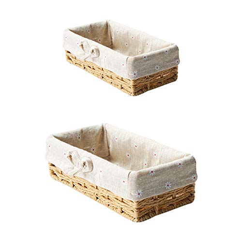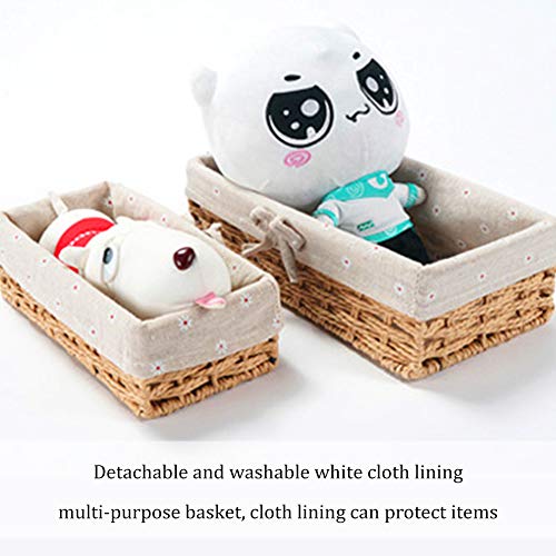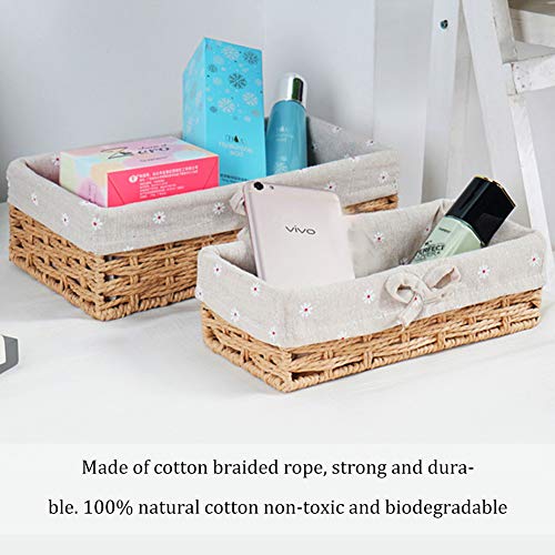 XYDZ 2PCS Cestino in Vimini Cesto Contenitore Organizer Tessuto Corda di Cotone Rettangolari Perfetti per Riporre Oggetti di Piccole Dimensioni Con Fodera Bianca Rimovibile e Lavabile - Beige