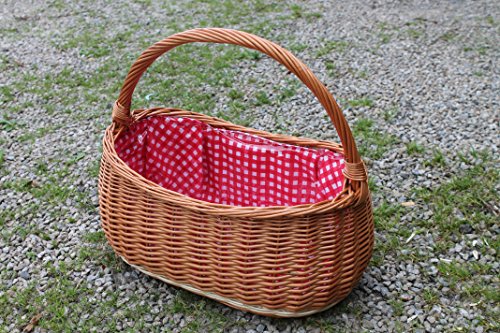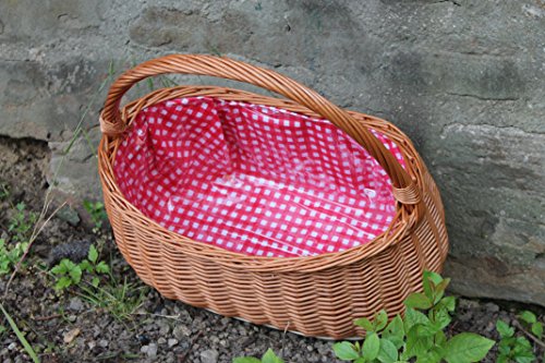 Cestino in vimini, extra stabile, con manico lungo... Garniert in rosso bianco
