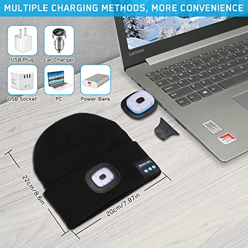 CestMall Berretto Bluetooth Cappello con Luce LED Ricaricabile, Wireless Berretto Musicale con Torcia a LED Tecnologia Uomo Donna Idea Regalo per Uomo Donna Corsa Sci Escursionismo Ciclismo