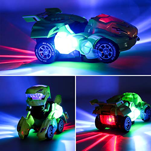 CestMall Transforming Dinos Car, Robot con luci e Suoni, Toy Dinosaur Car 2 in 1 Transformers Giocattolo Elettrico per Bambini Dinosaur LED Car Giocattoli per Bambini per Natale Regali di Compleanno