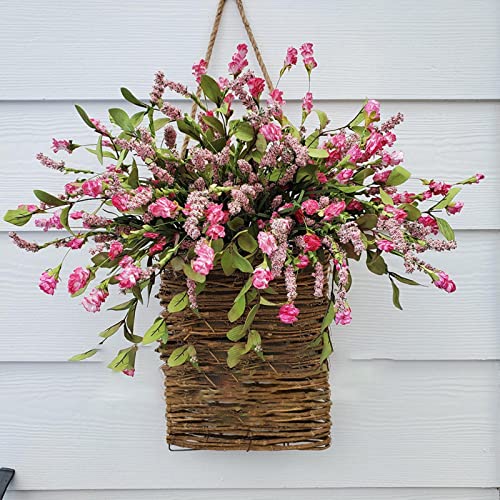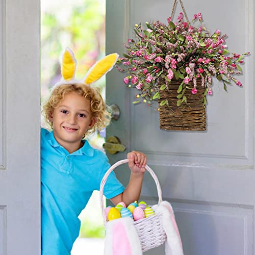 Cesto da appendere artificiale da 17,7 pollici, ghirlanda da appendere alla porta di fiori selvatici, ghirlanda primaverile per porta d'ingresso, segno di benvenuto primaverile decorazioni per la casa