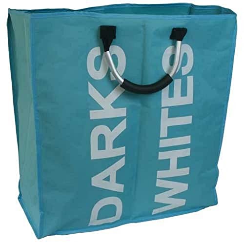 JVL - Cesto per la Biancheria a Due Scomparti, in Tela, con Manici, Colore: Blu