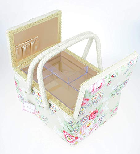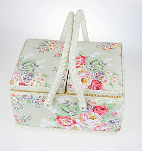 Cesto da cucito con doppio coperchio floreale con due manici in 2 colori esclusivi per la casa di quercia e regali