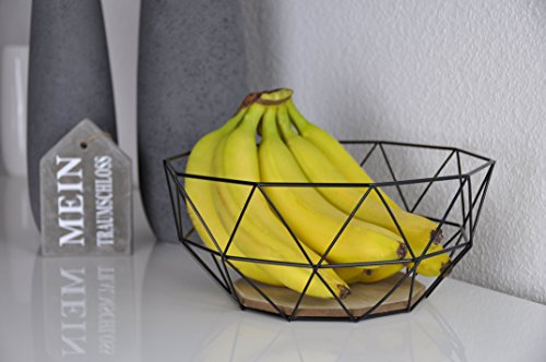 Cesto per la frutta moderno, in metallo nero e legno marrone, 26,5 x 25 x (A) 12 cm