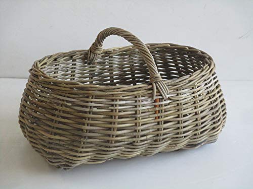 CESTO PER FUNGHI CESTONE IN VIMINI RATTAN CON MANICO CM 55X40X22/32H PORTA LEGNA