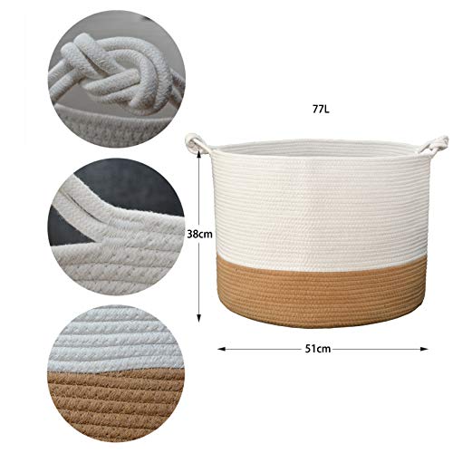 Cesto portabiancheria extra grande in corda di cotone, diametro 51 cm x altezza 38 cm, 77 l (bianco e marrone)
