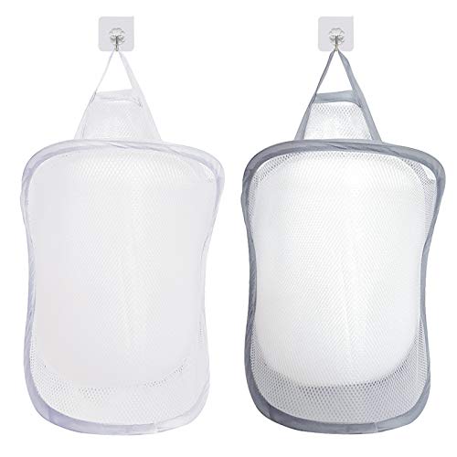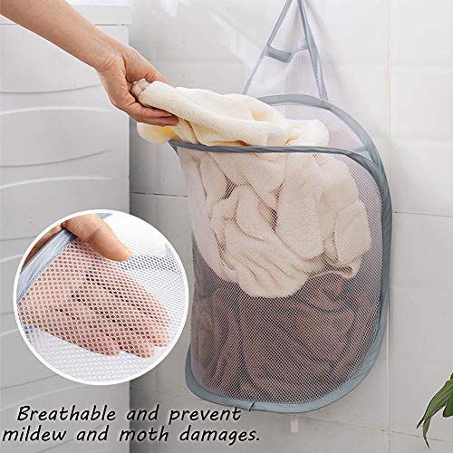 Cesto Portabiancheria Pieghevole, 2 Pezzi Cesto Portaoggetti per Biancheria Pop-up Borsa per Lavatrice Pieghevole Giocattolo da Appendere Organizer Ordinato con Manico (Bianco e grigio)