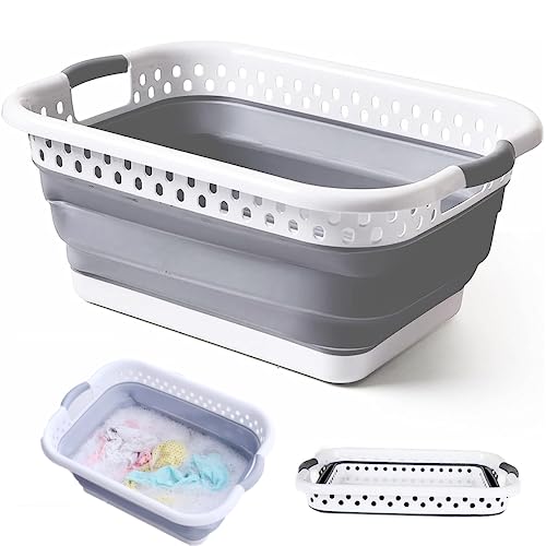 CHSG Cesto Portabiancheria Pieghevole in Plastica, Contenitore Pop-Up - Vasca Portatile, Cesto Salvaspazio, per Glassare Bevande, Bagnare Gli Animali Domestici, Contenitori per Giocattoli (Grigio)