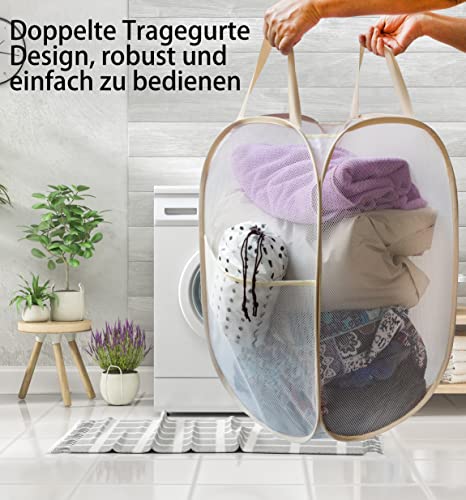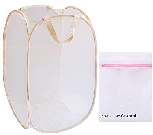 Cesto portabiancheria pop-up + sacchetto per la biancheria, pieghevole, cesto portabiancheria a rete per biancheria (beige)