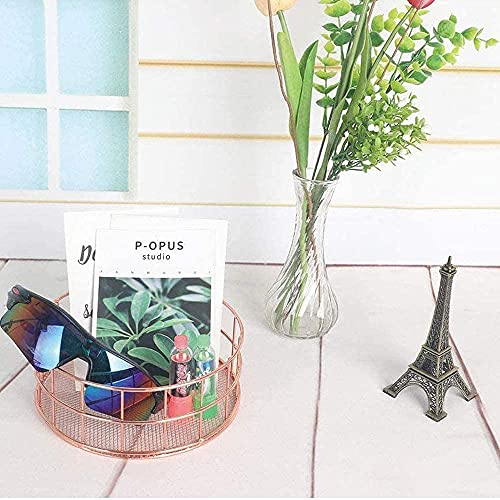 Cesto Portaoggetti in Metallo,Cesto Portaoggetti in Ferro Battuto Finito,Cesto Portafrutta in Filo Metallico,Cesto Portaoggetti da Toeletta,Portaoggetti Multiuso per Ufficio,Camera da Letto(Oro Rosa)