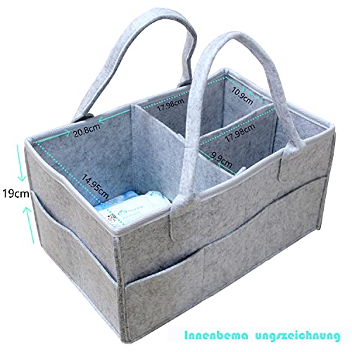 Cesto portaoggetti per pannolini per bambini, portatile, grande borsa perl'asilo,con scomparti intercambiabili,per fasciatoio,massaggiagengiveepannolini, ottimoregalo perbambini (grigio chiaro)