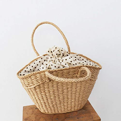 CESUO Borsa da Donna Borsa un Tracolla da Donna nel Vimini Borsa un Tracolla da Spiaggia Borsa nel Paglia Intrecciata Portafoglio Portatile di Grande Capacità Dot Grande Cestino A