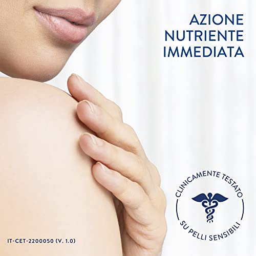 FORMULA: Con un'esclusiva combinazione con 9 ingredienti idratanti tra cui Burro di Karité, Vitamine E, B3 e Pro-Vitamina B5, nutre intensamente la pelle secca, idratandola per 48 ore.