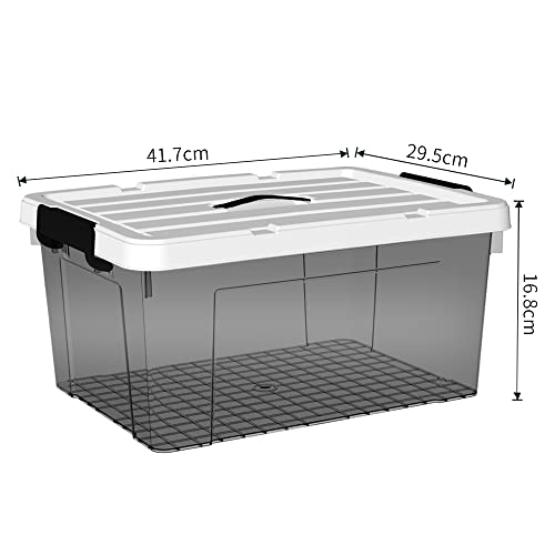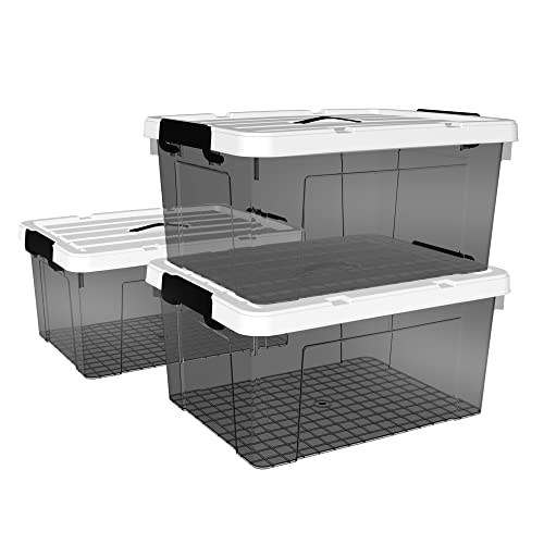 Cetomo Scatola portaoggetti in plastica da 15 l* 3, contenitore organizer con coperchio durevole e fibbie di chiusura sicure, impilabile e annidabile, confezione da 3, nero trasparente con fibbia nera