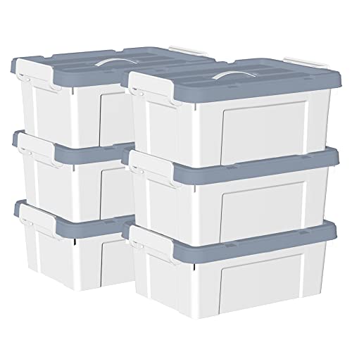 Cetomo Scatola portaoggetti in plastica da 20 l x 6, contenitore organizer con coperchio durevole e fibbie di chiusura sicura, impilabile e annidabile, confezione da 6 pezzi, bianco