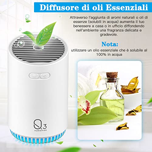 【Funzionamento silenzioso】 Mini umidificatori a ultrasonic con principio dell'onda ultrasonica che ha un livello di rumore estremamente silenzioso inferiore a 30 dB durante il funzionamento. Quando è in funzione non ti disturberà mentre dormi o lavori. Adotta la tecnologia ad ultrasuoni per oscillare e scomporre l'acqua in raffinate molecole di nebbia fredda di classe nano. Può idratare efficacemente la pelle secci e aiutare a ridurre la perdita di cellule morte della pelle.