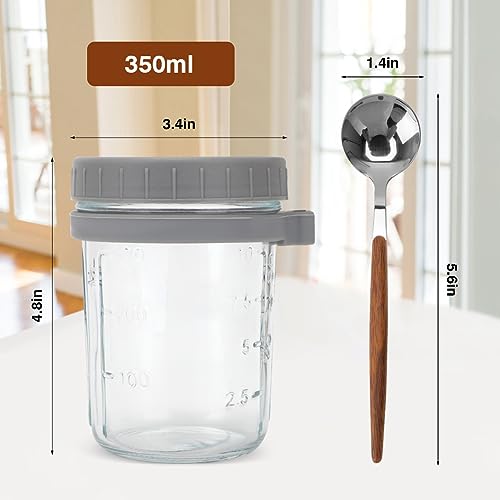 CEWROM Overnight Oats Jars, Riutilizzabile Tazza Yogurt e Cereali Set 2, 350ml Bicchiere con Coperchio e Cucchiaio Tazza per Cereali Portatili Porta Yogurt per Insalate Latte Cereali Frutta ecc