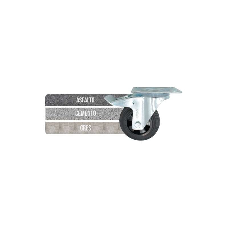Ruota Industriale In Gomma Su Piastra Rotante Con Cuscinetti A Sfera E Freno, Nucleo In Materiale Termoplastico, Mozzo A Foro Passante Con Cuscinetti A Rullo.. Acquistalo subito da CFadda e ricevilo comodamente a casa.