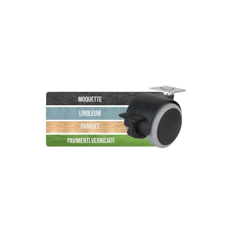 Corpo Nero In Polipropilene, Battistrada In Poliuretano Grigio Antitraccia, Piastra In Acciaio Zincato. Dispositivo Di Bloccaggio Ruota.Generalmente Utilizzato Per: Mobili, Espositori, Cassettiere, Sedie. Acquistalo subito da CFadda e ricevilo comodamente a casa.