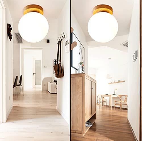 CFKAH Moderno Plafoniera Faretto a Soffitto Corridoio Ingresso Balcone Illuminazione Interna Decorazione Illuminazione Piccola Stanza Paralume in Vetro Bianco Base in Legno Base E27,Ø15CM