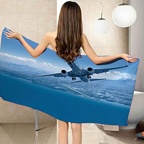 CGBNDS telo mare asciugamano da bagno Aereo con cielo azzurro e nuvole bianche grande 80X160cm microfibra Telo per bambina uomo bambino telo mare donna bambini asciugamani da bagno morbidi e asciugatu