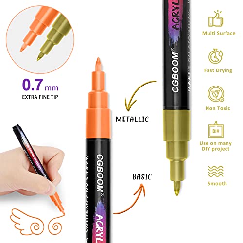 CGBOOM 22 Colori Pennarelli Acrilici, 0.7mm Punta Fine Pennarelli Acrilici per Dipingere Sassi, Pennarelli Indelebili Sassi da Dipingere, Pennarelli Colorati per Vetro Tessuti Ceramica Legno