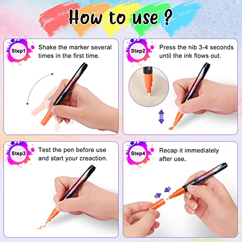 【Pennarelli Acrilici Punta Fine】- Il pennarelli acrilici da 0,7 mm con punta fine offre un controllo preciso, grazie alla struttura a valvola, sono necessari solo 4 passaggi, agitare, aprire, spingere e tirare. L'inchiostro di questo pennarello acrilico scorre bene durante il lavoro, la vernice non cola e si asciuga rapidamente. La pennarelli indelebili può fornire un'ottima copertura per i progetti.