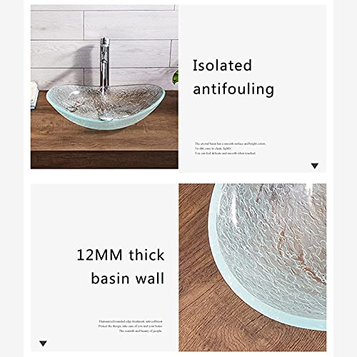 CGLYYDS Lavandino da Bagno Lavabo Ovale in Vetro temperato Trasparente Lavandino da appoggio con Rubinetto dell'Acqua e Set di Scarico Pop-up,B