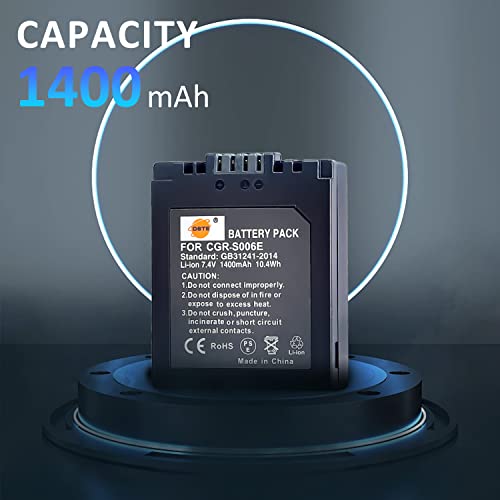 DSTE CGR-S006E - Batteria per fotocamera e caricatore compatibile con Panasonic Lumix DMC-FZ30 DMC-FZ50 DMC-FZ28 DMC-FZ18 DMC-FZ8 DMC-FZ38 DMC-FZ35 DMC-FZ7