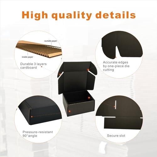 CH-BOX Confezione da 50 buste in cartone ondulato, 10 x 10 x 5 cm (dimensioni interne), piccole scatole di spedizione, nero (CM442B)