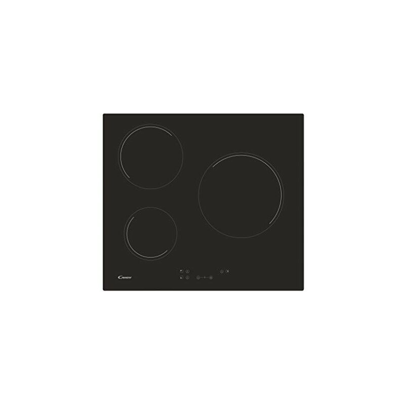 Candy CH63CC, piastra in vetroceramica, 3 zone, 60 cm, 10 livelli di potenza, 5,5 W, comandi centrali, blocco di sicurezza, indicatore di calore, allarme surriscaldamento e perdite, nero 3 fuegosSize: 3 fuegos