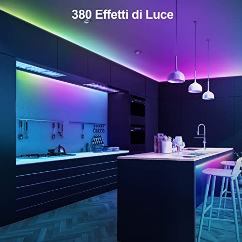 【380 Effetti di Luce】 Con l'APP, puoi scegliere tra 380 effetti di luce. E la striscia led RGB con ic può essere utilizzata all'interno e all'esterno, molto adatta per decorare la tua camera da letto, il piano superiore, la cucina, il portico, la scrivania del computer e i soggiorni, la retroilluminazione della TV, il patio, il Natale, i compleanni, le vacanze. Sarà anche un bel regalo per le tue famiglie e i tuoi amici.