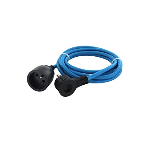 CHACON 66768 Prolunga Tessile 3 m 3 x 1,5 m2textile Cable & Noir fiche Plate Bleu, Blu Pavone