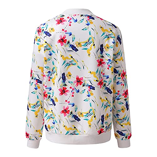 Giacca da donna con cerniera, chic ed elegante, giacca bomber da donna alla moda, cappotto da donna a maniche lunghe e sottili, con stampa floreale, giacca chic per primavera, estate e autunno, giacca da donna stampata a maniche lunghe, collo rotondo, con stampa a fiori. Cappotto da motociclista, corto, retrò, con cerniera, stile bomber casual