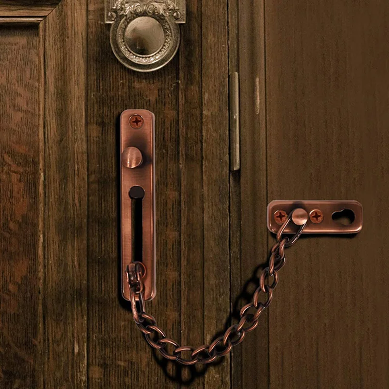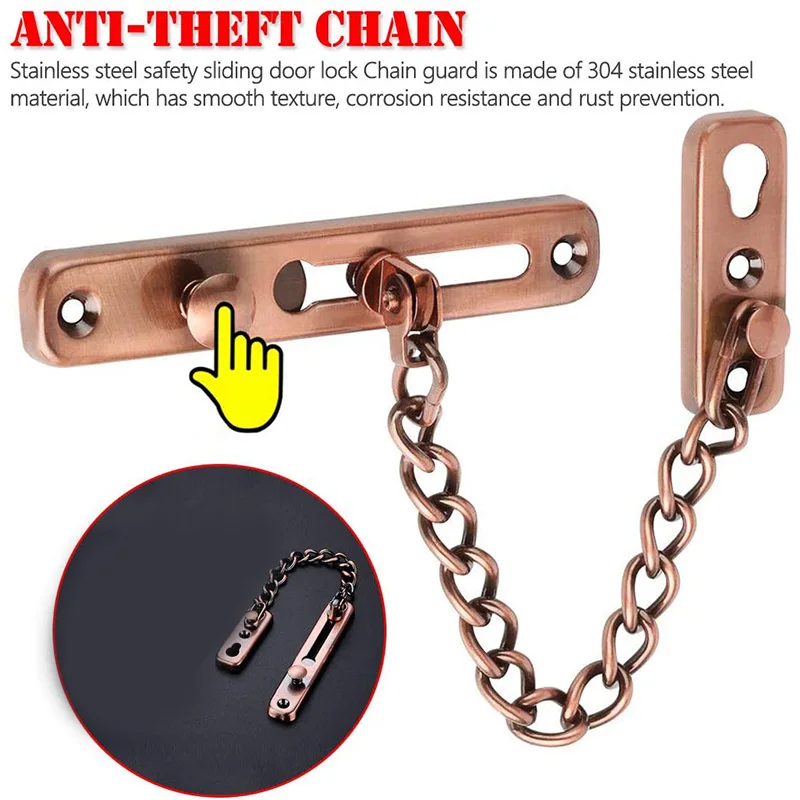 2 Pack Door Chain Lock, Security Chain Guard with Spring Anti Theft Press Lock, Polished Door Latch Red Bronze