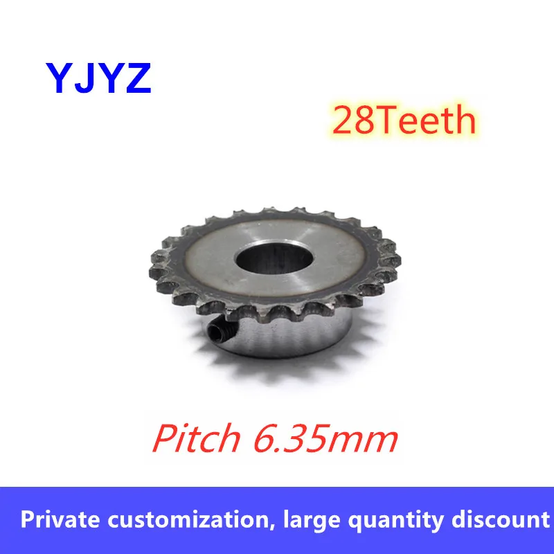 Chain wheel 2Points 28 teeth standard hole M5 screw hole fixed 45#steel quenching pitch 6.35