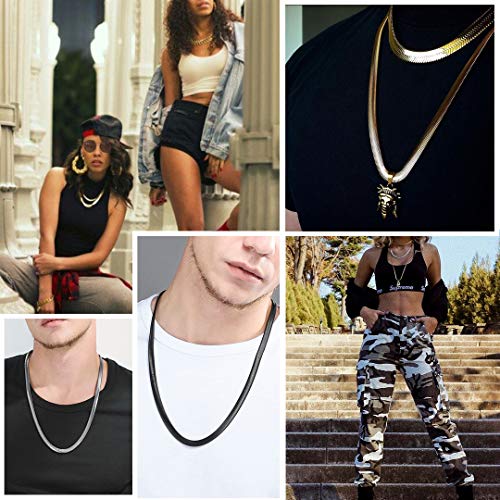 ChainsHouse Collana con Serpente per Uomo Donna Larghezza 8 mm 46 cm - 76 cm di Lunghezza [Platino Oro Nero] Acciaio Inossidabile 316L Catena a Serpente Piatta Senza Ciondolo Confezione Regalo