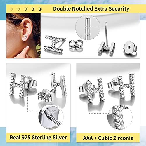 ChainsHouse A-Z Orecchini a Bottone con Iniziale per Donna e Ragazza Orecchini in Argento Sterling 925 con Zirconia Cubica Orecchini a Forma di Lettera di Alfabeto Iniziale Ipoallergenico