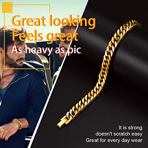 ChainsPro Cubana Catena Bracciale Uomo Acciaio, 8 mm Oro Grossa Robusta Braccialetto Uomo, 21 cm Lunghezza Bracciali Gioielli Uomo di Moda, Natale Compleanno Regalo per papà Fidanzato Ragazzi