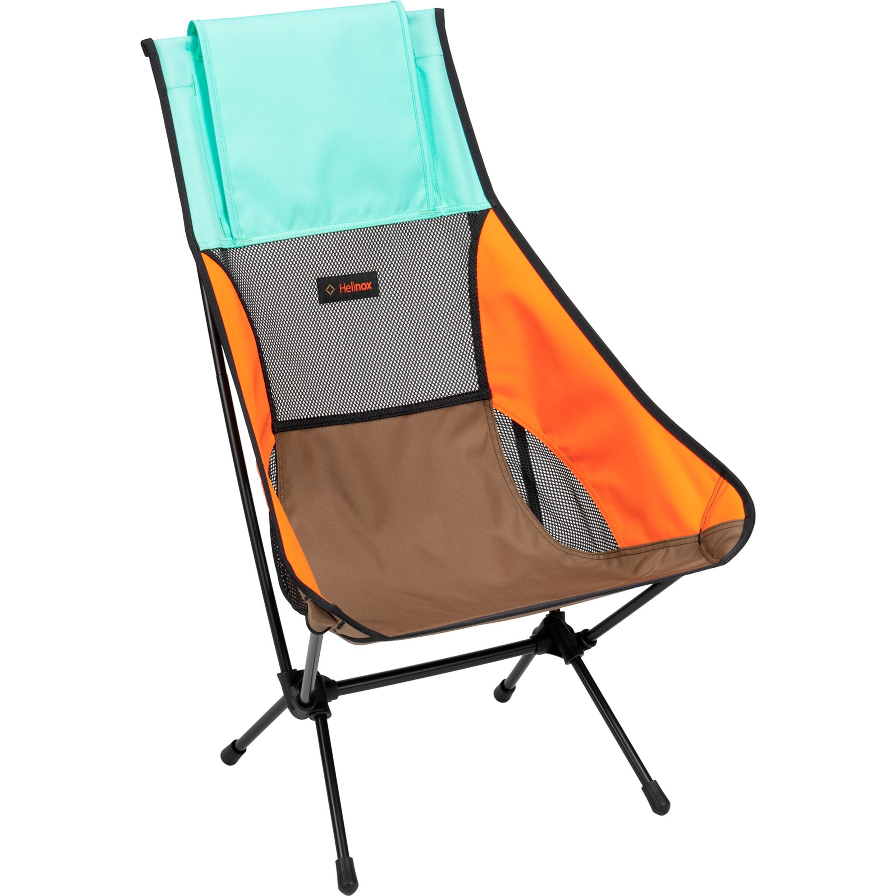 La Helinox Chair Two è la versione con schienale alto della classica Chair One. La Chair Two Mint MultiBlock 10002800 è la stessa della Chair One, ma lo schienale rialzato consente un comfort ancora maggiore per la testa e le spalle. Offre il perfetto equilibrio tra dimensioni ridotte e comfort pratico. Il collo e la schiena sono sostenuti senza dover portare un peso extra eccessivo. Simili ai pali della tenda di fascia alta, i pali in alluminio DAC della Chair Two sono collegati da elastici. Quindi "cerca" sempre la posizione giusta e si mette insieme quasi da solo. Il montaggio e lo smontaggio sono un gioco da ragazzi. Nonostante il loro peso ridotto, le aste in alluminio DAC appositamente temprate offrono una grande stabilità. Helinox dota la seduta di inserti in rete traspirante sullo schienale e sui fianchi. Offre una ventilazione efficace e un''esperienza di seduta confortevole, anche nelle giornate calde. Il sacco serve anche come cuscino per il collo sulla Chair Two. Basta arrotolare un asciugamano e metterlo nella sacca e fissarlo allo schienale utilizzando la patta in velcro nascosta. Per un comfort ancora maggiore, la sedia può essere combinata con il poggiatesta Air & Foam, disponibile come optional.