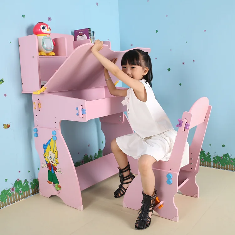 Kids Desk and Chair Set with Bookcase Large Storage Height Adjustable Study Table for Kids Drawing Table Boys Girls Children