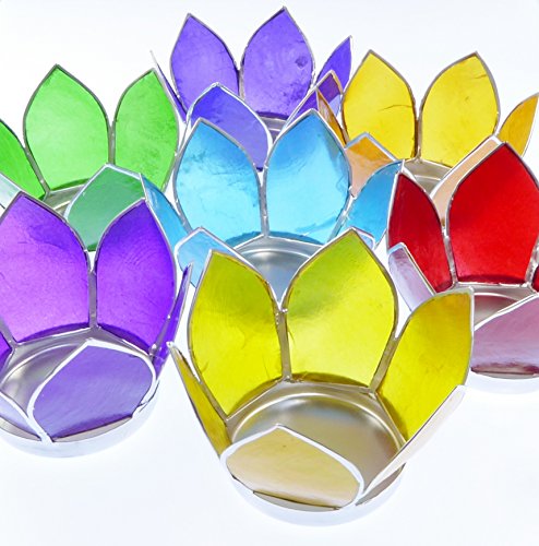 7 x Chakra arcobaleno fiore di loto lumino portacandele casagrande involucro te chiaro set regalo