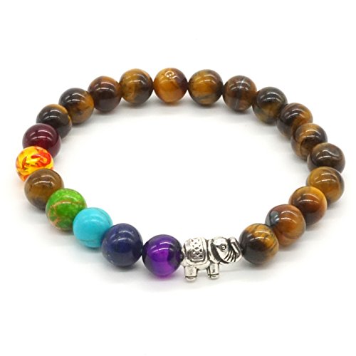 7 Chakra Bracciale Yoga Elefante Portafortuna, Agata Pietra Braccialetto Per Uomini e Donne -occhio di tigre
