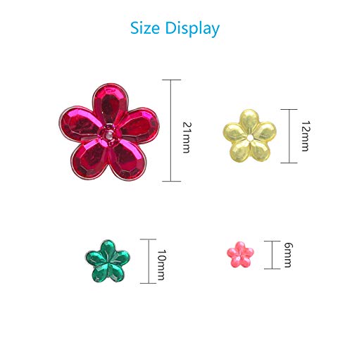 CHALA 1450 Pezzi Strass Fiore,Gemme Adesive 6mm 10mm 12mm 21mm Acrilico Colori Diversi Bambini Decorazione Artigianale(Nessuna Appiccicosità)