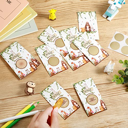 Chalyna 50 Gioco di Gratta e Vinci di Bosco per Baby Shower Giochi di Lotteria di Rivelazione Carte Stampate di Animali di Foresta per Premi attività di Disegno Forniture per Ragazzo Feste a Tema