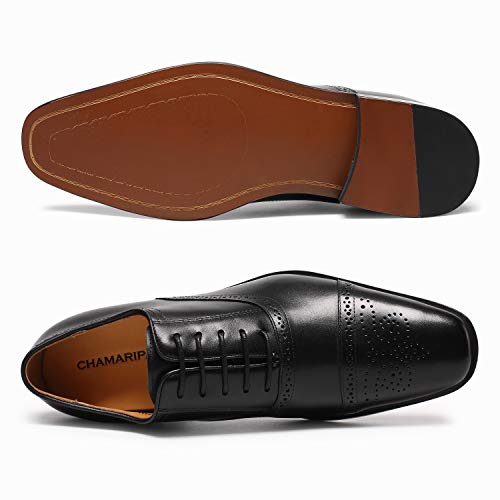 CHAMARIPA Scarpe Eleganti da Uomo Pelle - Rialzo Interno 7CM Stringate Derby Basse Oxford Vintage Verniciata Cuoio Brogue - K6531