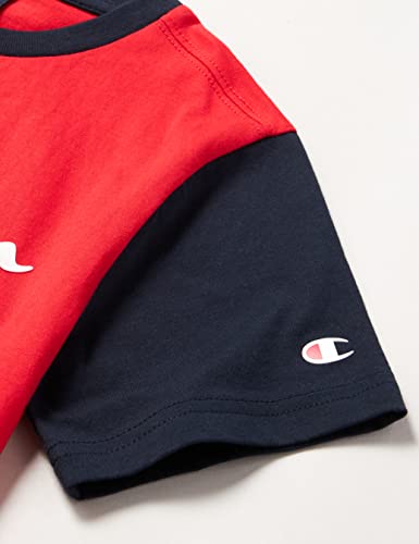 Champion American Classics- Color Block S/S, T-shirt Bambini e ragazzi, Rosso/Blu, 7-8 anni