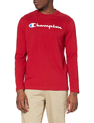 Champion Classic Logo Long Sleeve Crewneck T-Shirt, Maglietta a Manica Lunga, Uomo, Rosso, XL