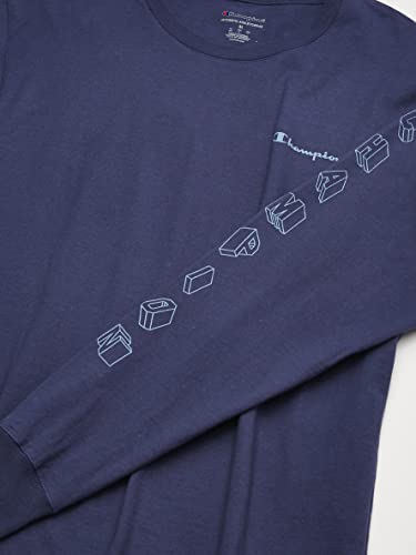 Champion Men's Long Sleeve Tee, Arm Script, Classic Sky Blue-586584, Large