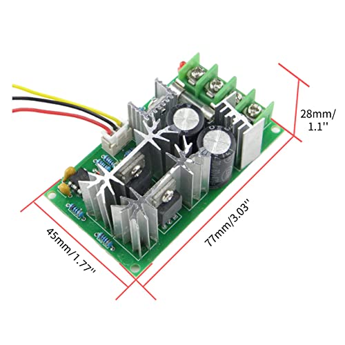 *Le specifiche del regolatore di velocità: Tensione di ingresso: DC 10V-DC 60V (tensione di lavoro ultra ampia), Tensione di uscita: lineare sotto carico, Potenza di controllo: 0,01-1200W, Corrente nominale: 10A, Corrente massima: 20A (uso a lungo termine di 10A, 450W o meno, prestare attenzione a mantenere il modulo libero da condizioni di dissipazione del calore), PWM Duty Cycle: 0%-100%, Frequenza PWM: 25Khz, Dimensioni del prodotto (L x W x H): 77*45*28mm